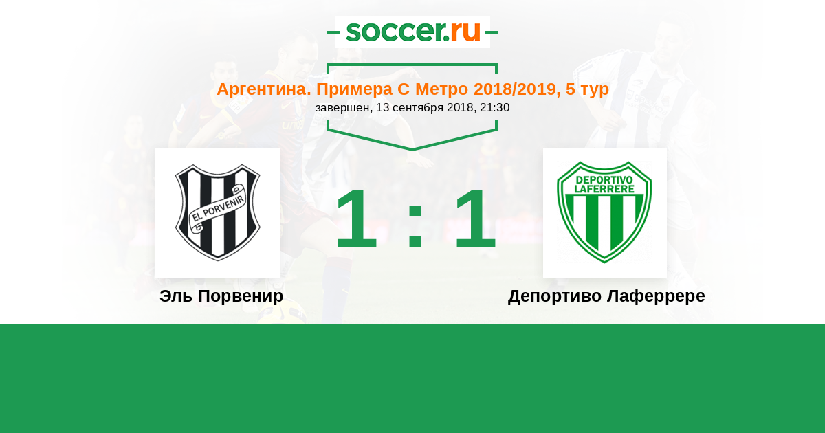 Аргентина. Примера С Метро 13.02.2018 Депортиво Лаферрере Логотип футбольный клуб Депортиво Лаферрере 1:1 Логотип футбольный клуб Эль Порвенир (Буэнос-Айрес) Эль Порвенир