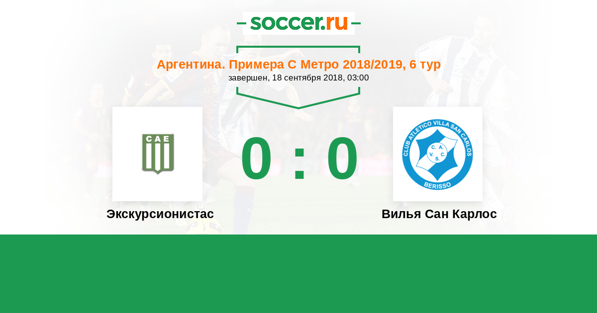 Аргентина. Примера Б Метро 30.10.2016 Экскурсионистас Логотип футбольный клуб Экскурсионистас (Буэнос-Айрес) 0:0 Логотип футбольный клуб Вилья Сан Карлос (Берисо) Вилья Сан Карлос
