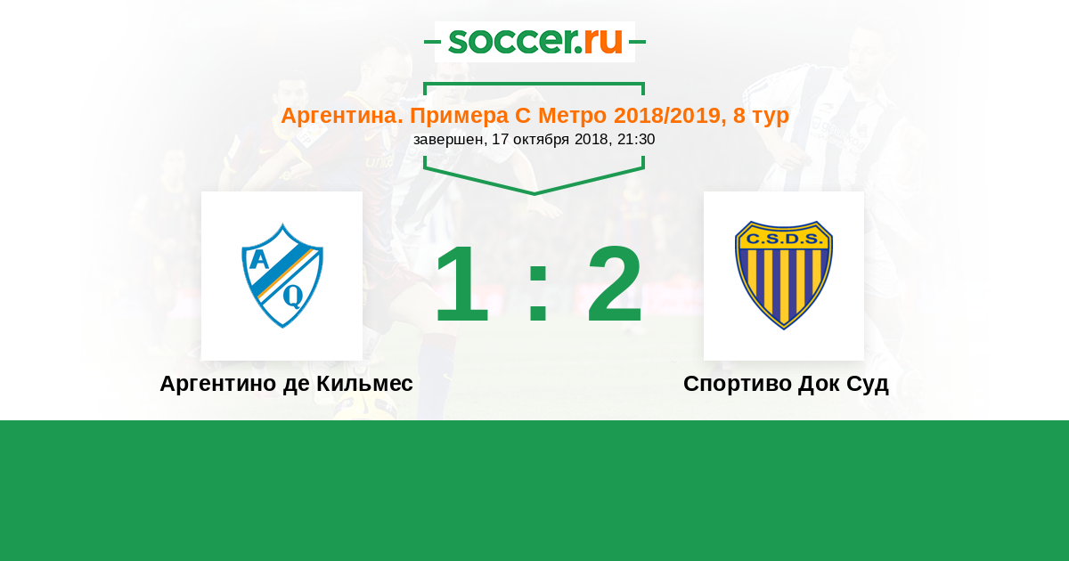 Аргентина. Примера С Метро 13.09.2016 Аргентино де Кильмес Логотип футбольный клуб Аргентино де Кильмес 1:1 Логотип футбольный клуб Спортиво Док Суд (Буэнос-Айрес) Спортиво Док Суд