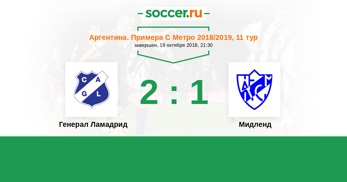 Аргентина. Примера С Метро 30.03.2019 Мидленд Логотип футбольный клуб Мидленд (Либертад) 1:1 Логотип Генерал Ламадрид (Буэнос-Айрес) Генерал Ламадрид