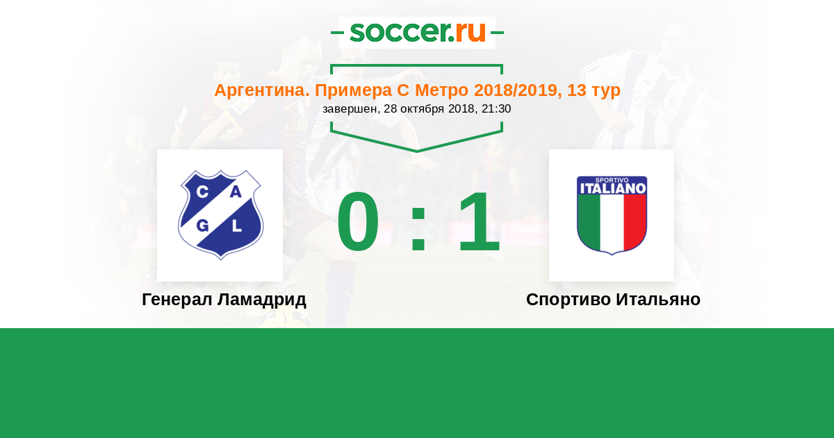 Аргентина. Примера С Метро 29.09.2012 Генерал Ламадрид Логотип Генерал Ламадрид (Буэнос-Айрес) 0:1 Логотип футбольный клуб Спортиво Итальяно (Буэнос-Айрес) Спортиво Итальяно