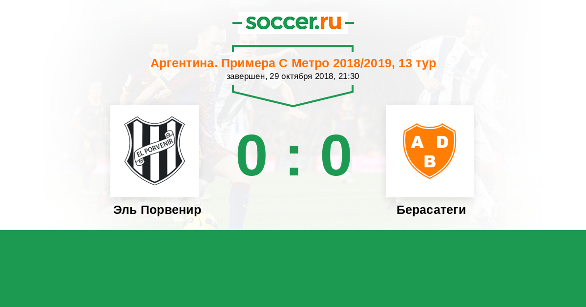 Аргентина. Примера С Метро 15.04.2018 Эль Порвенир Логотип футбольный клуб Эль Порвенир (Буэнос-Айрес) 2:0 Логотип футбольный клуб Берасатеги (Буэнос-Айрес) Берасатеги