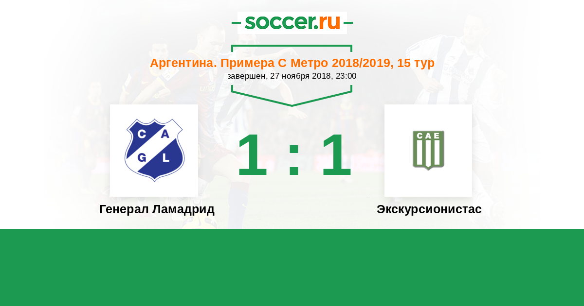 Аргентина. Примера С Метро 29.06.2015 Экскурсионистас Логотип футбольный клуб Экскурсионистас (Буэнос-Айрес) 1:1 Логотип Генерал Ламадрид (Буэнос-Айрес) Генерал Ламадрид