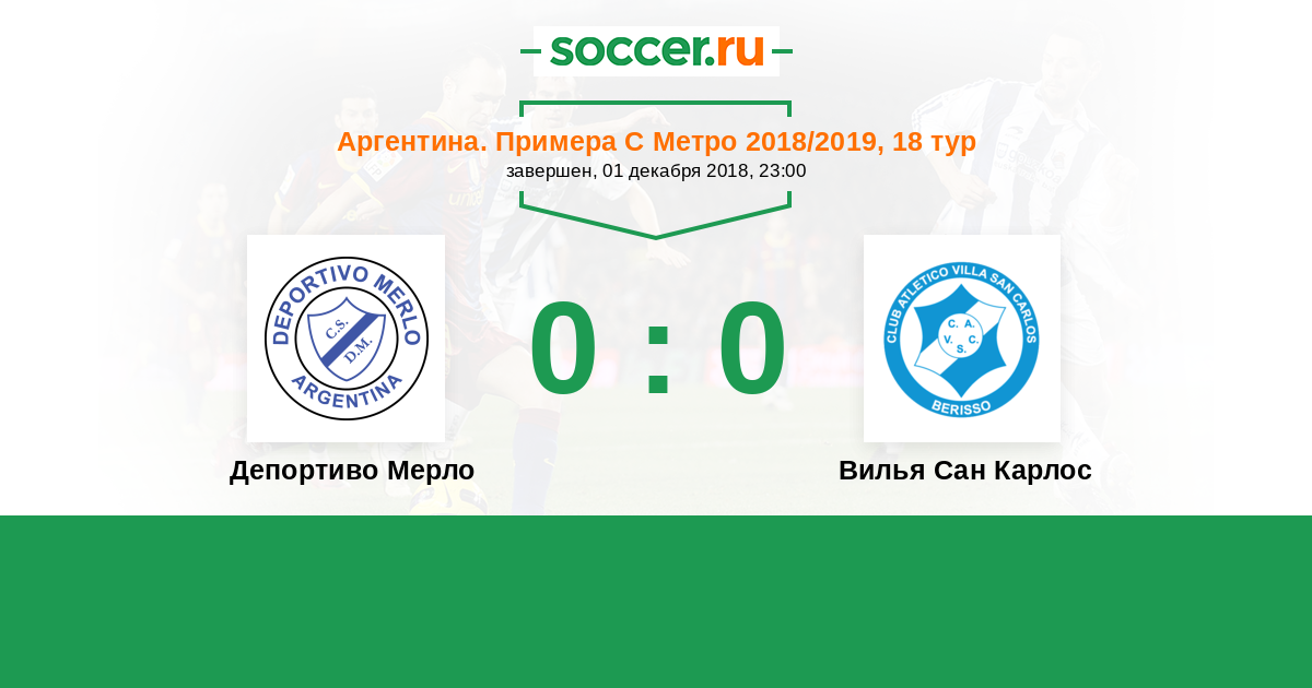 История матча Депортиво Мерло против Вилья Сан Карлос
