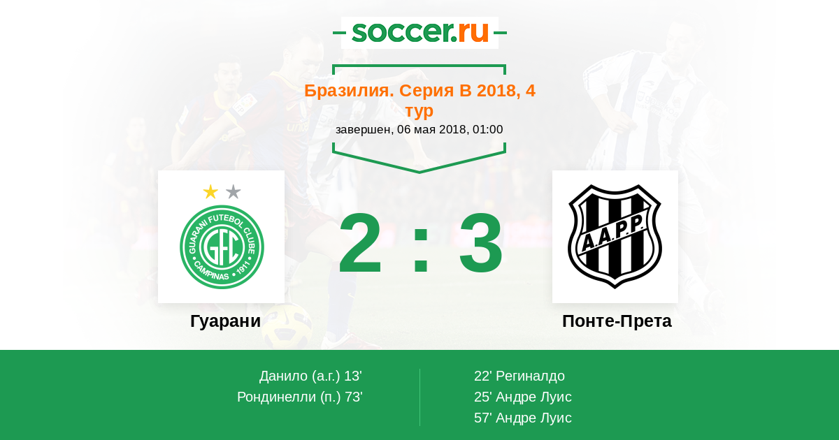 Протокол матча Гуарани против Понте-Прета