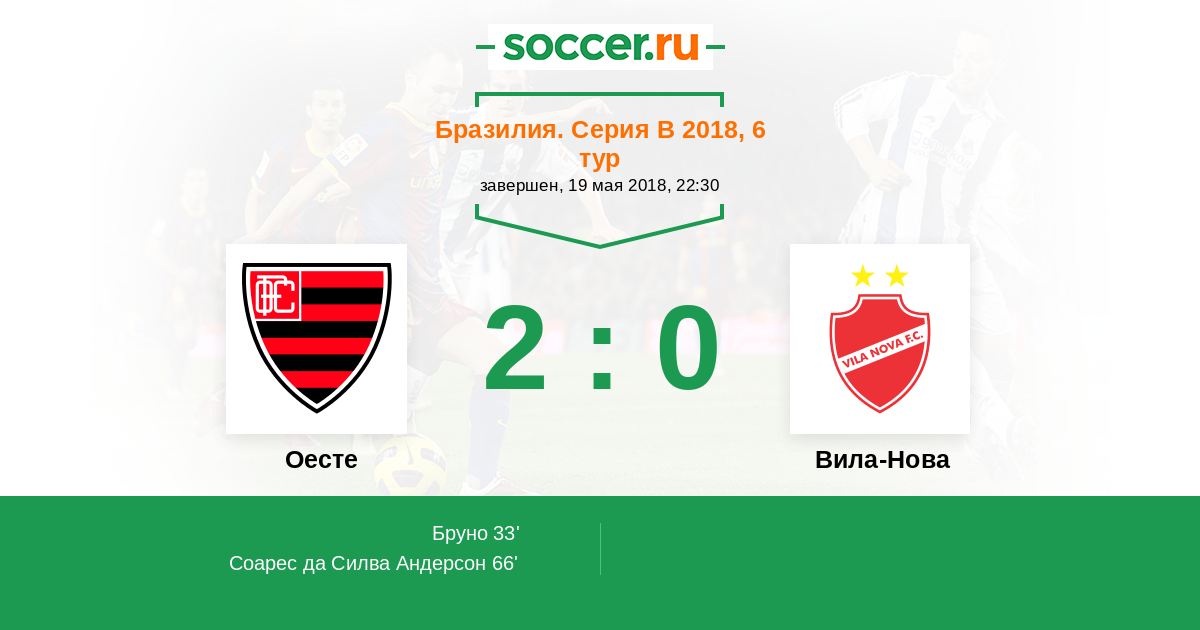33' (1:0) Бруно (2) (Соарес да Силва Андерсон (10))