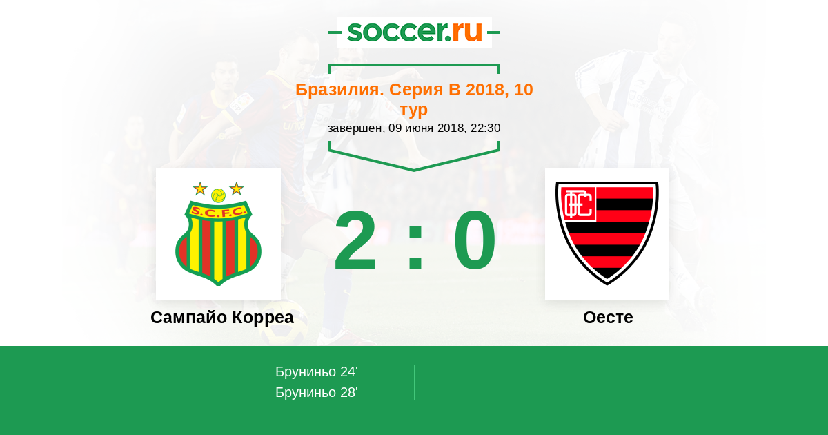 Протокол матча Сампайо Корреа против Оесте