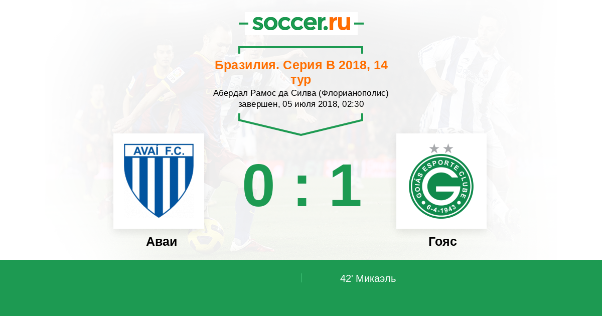 42' (0:1) Микаэль (11) (Фелипе Гонсалвеш (9))
