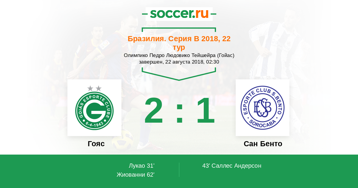 Протокол матча Гояс против Сан Бенто