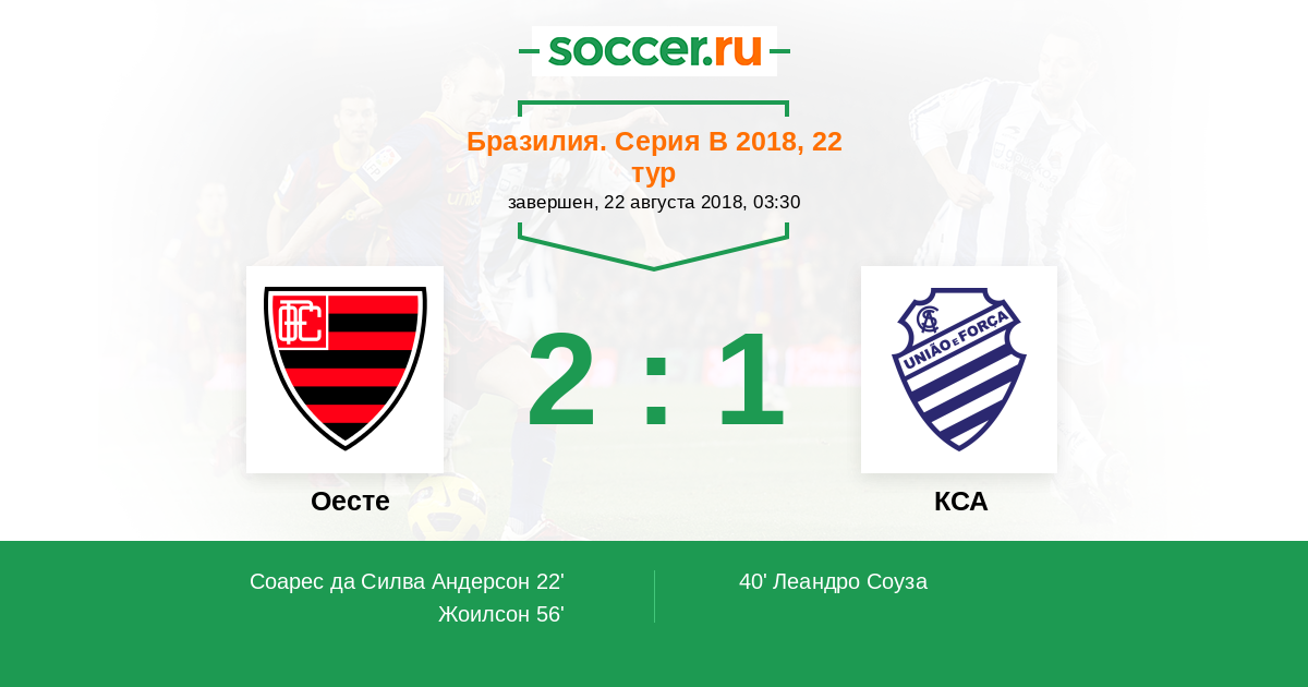 Протокол матча Оесте против КСА