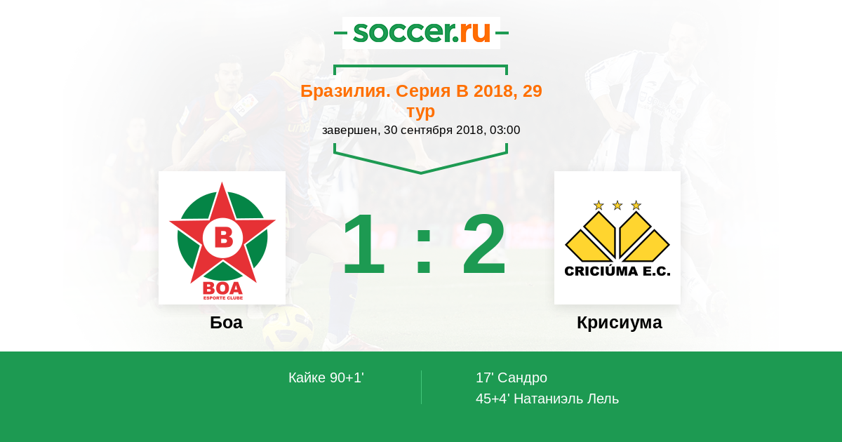 Протокол матча Боа против Крисиума