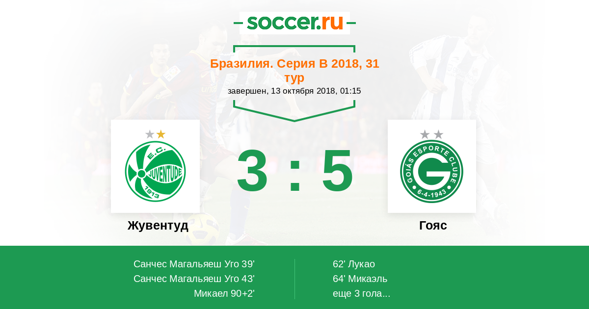 Протокол матча Жувентуд против Гояс