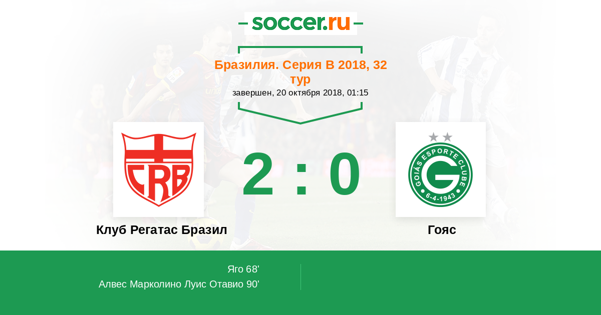 Протокол матча Клуб Регатас Бразил против Гояс