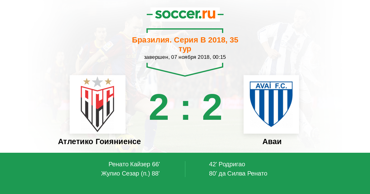 66' (1:1) Ренато Кайзер (7) (Андре Луис (20))
