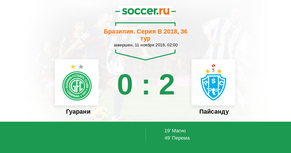 Протокол матча Гуарани против Пайсанду