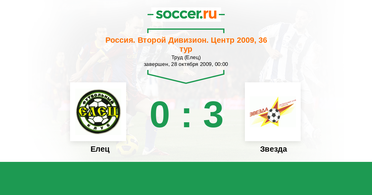 Россия. Вторая лига. Группа 3 28.10.2009 Елец Логотип футбольный клуб Елец 0:3 Логотип футбольный клуб Звезда (Серпухов) Звезда