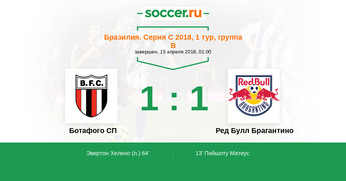 Протокол матча Ботафого СП против Ред Булл Брагантино