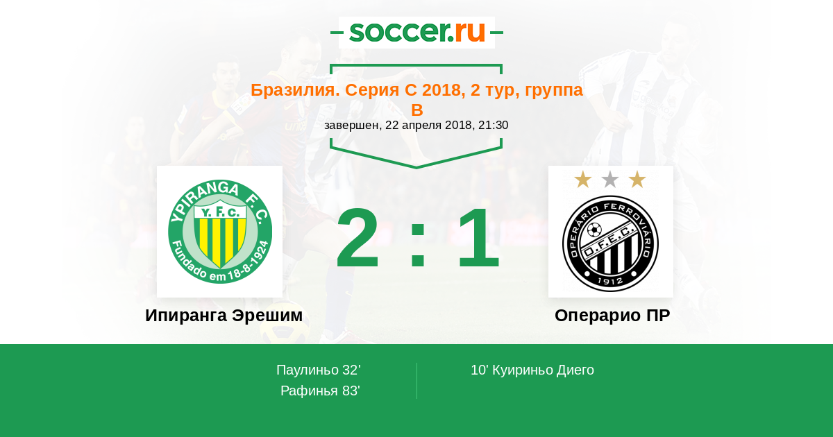 Протокол матча Ипиранга Эрешим против Операрио ПР