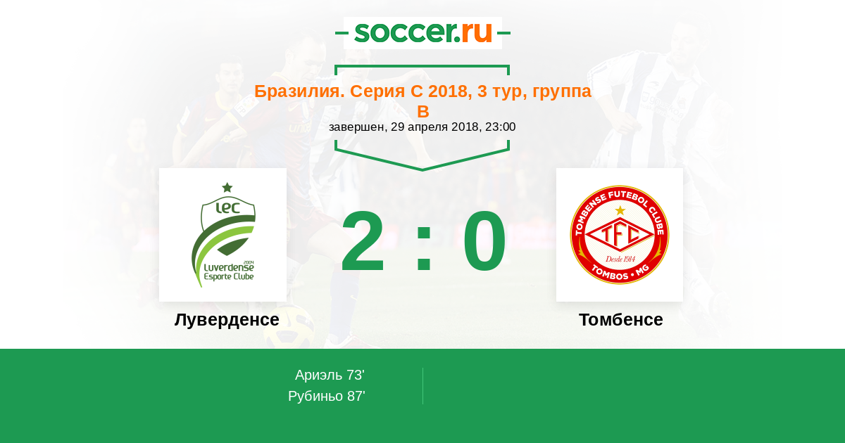 Протокол матча Луверденсе против Томбенсе