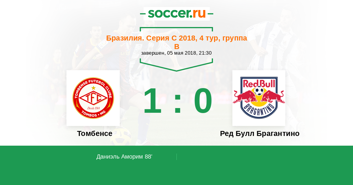 Протокол матча Томбенсе против Ред Булл Брагантино