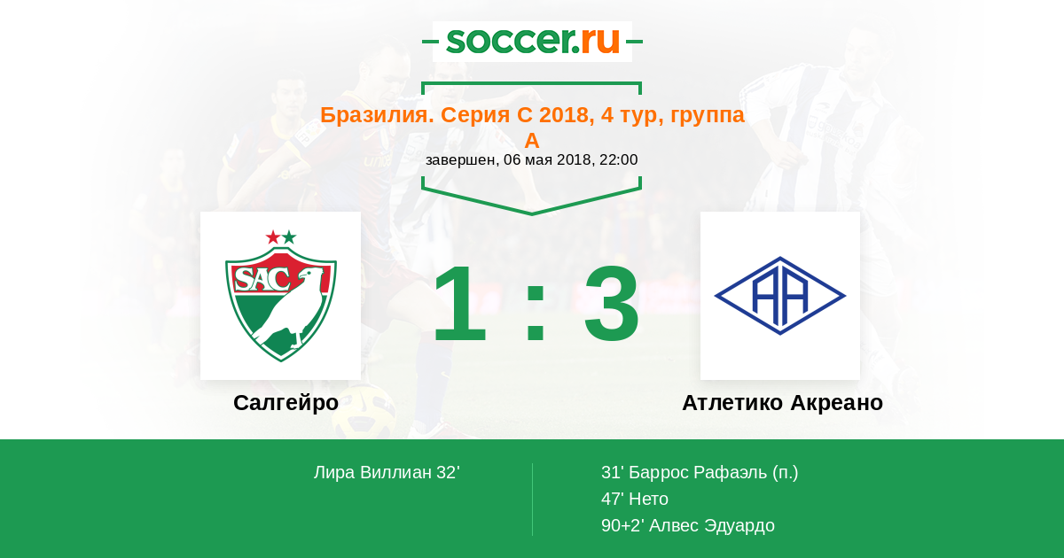Протокол матча Салгейро против Атлетико Акреано