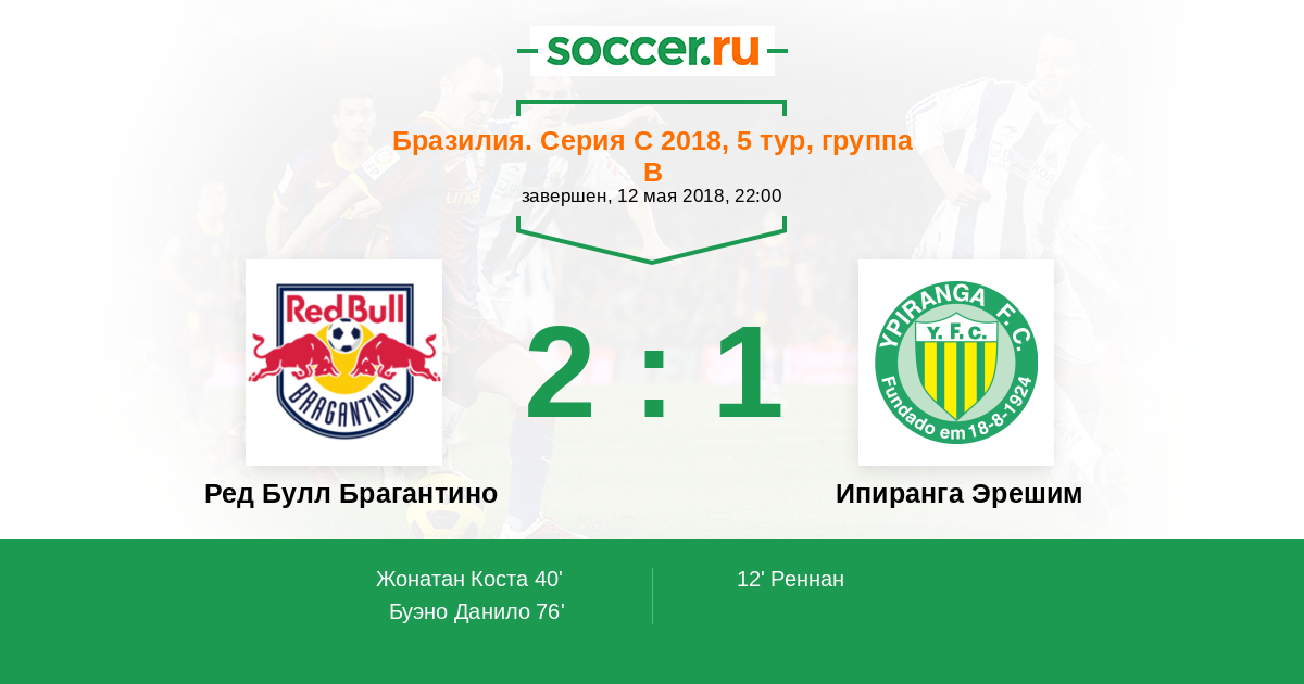 Протокол матча Ред Булл Брагантино против Ипиранга Эрешим