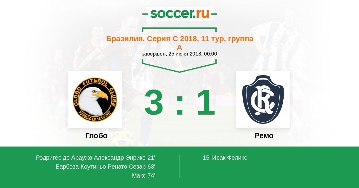 Протокол матча Глобо против Ремо