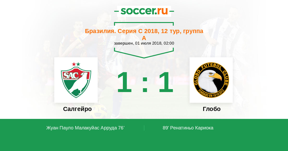 Протокол матча Салгейро против Глобо