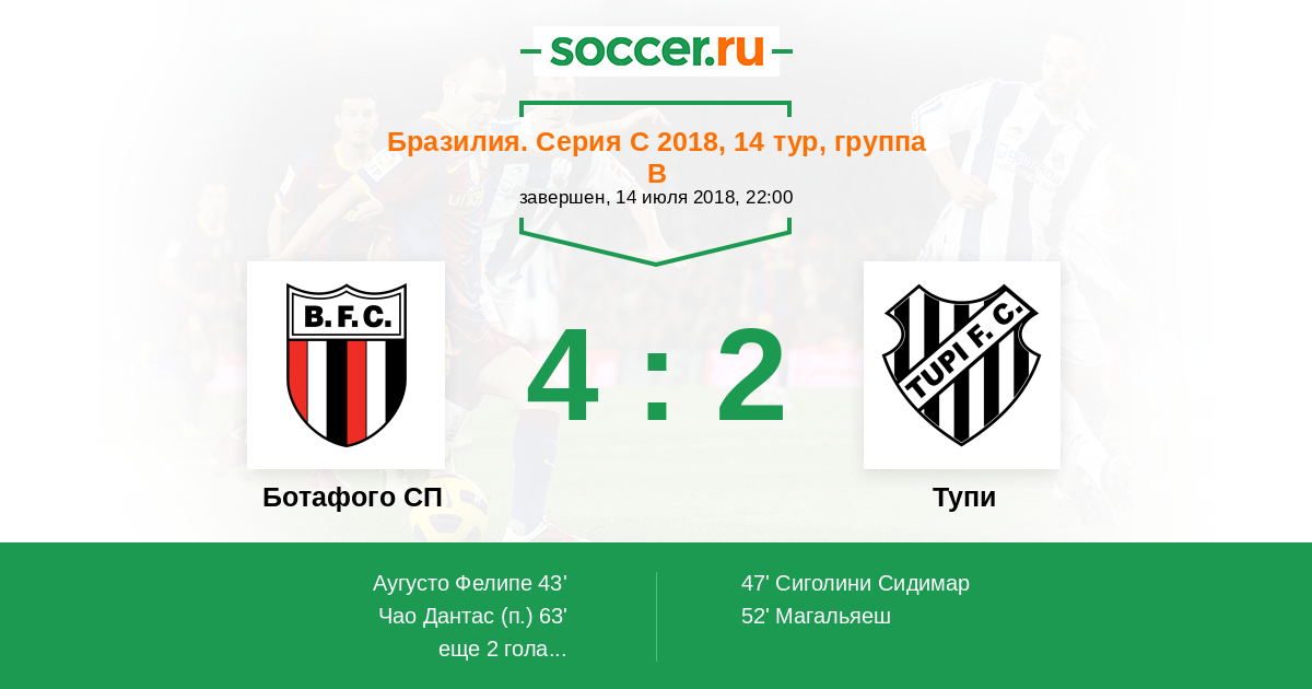 Протокол матча Ботафого СП против Тупи