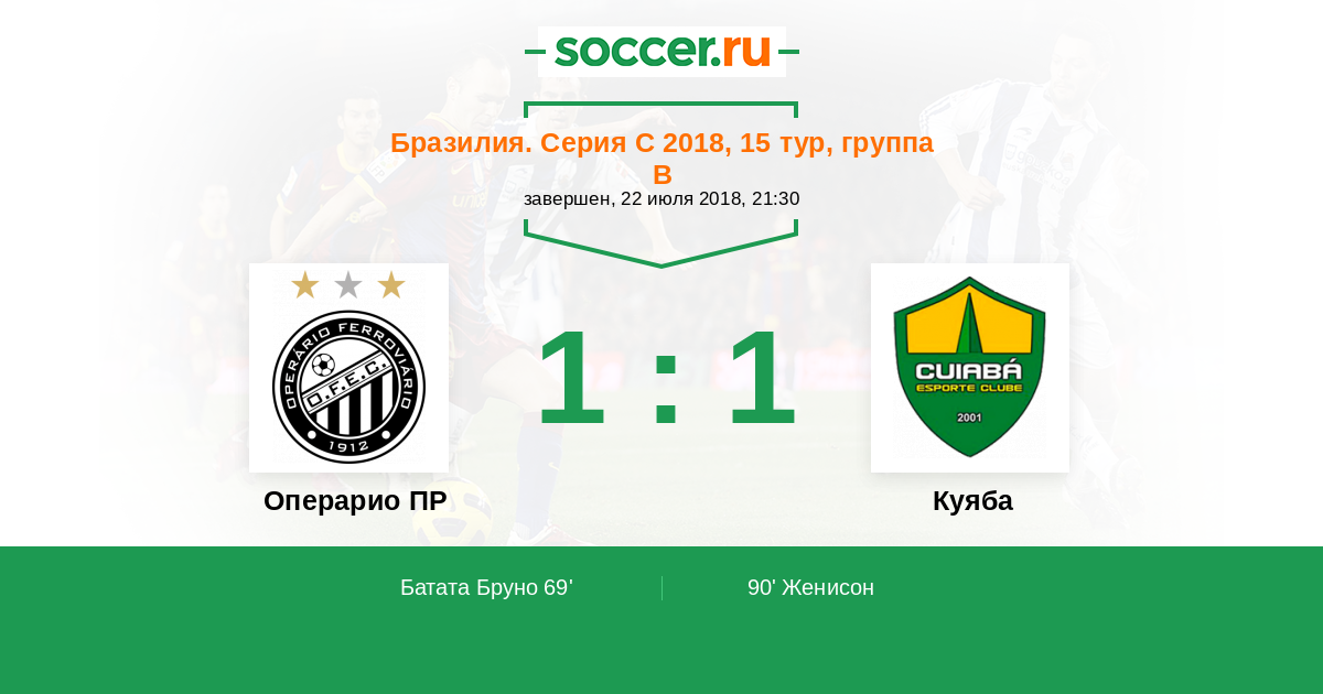 Протокол матча Операрио ПР против Куяба