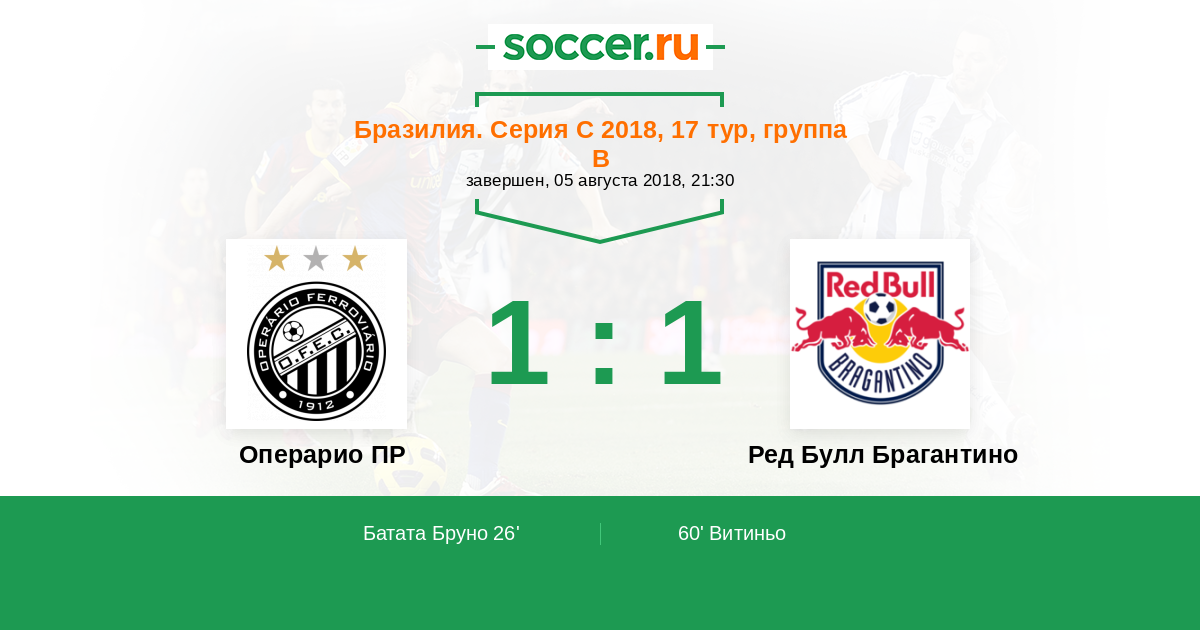 Протокол матча Операрио ПР против Ред Булл Брагантино