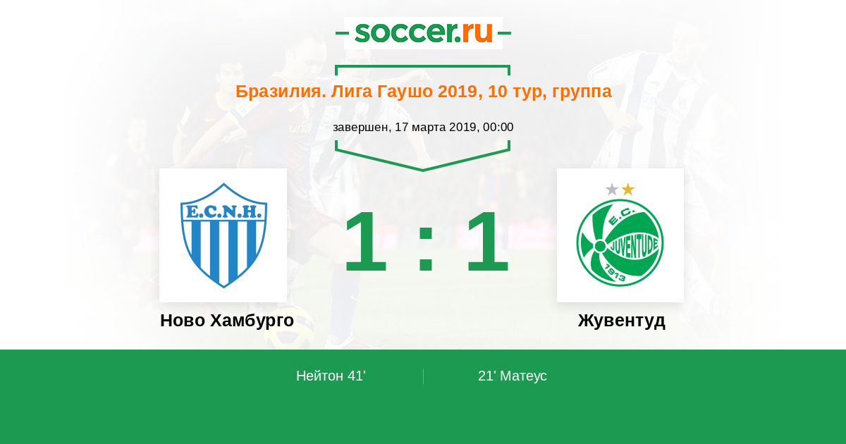 Протокол матча Ново Хамбурго против Жувентуд