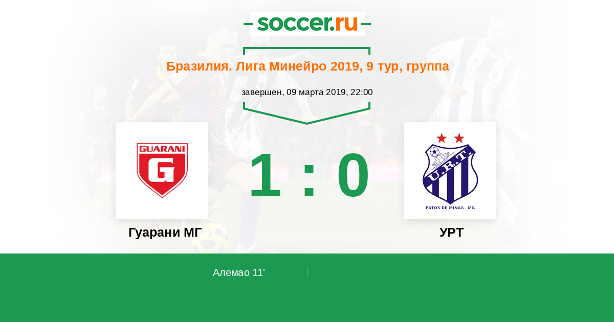 Протокол матча Гуарани МГ против УРТ