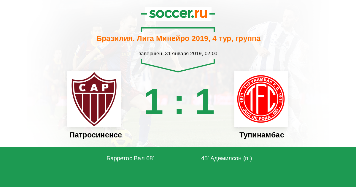 68' (1:1) Барретос Вал (19) (Тони Галего (20))
