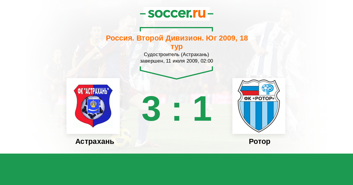 Россия. Вторая лига. Группа 3 02.09.2009 Астрахань Логотип футбольный клуб Астрахань 2:1 Логотип футбольный клуб Ротор (Волгоград) Ротор