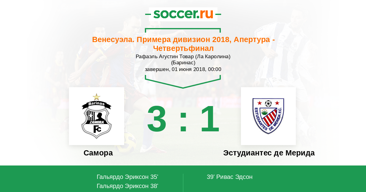 Протокол матча Замора против Эстудиантес Мерида