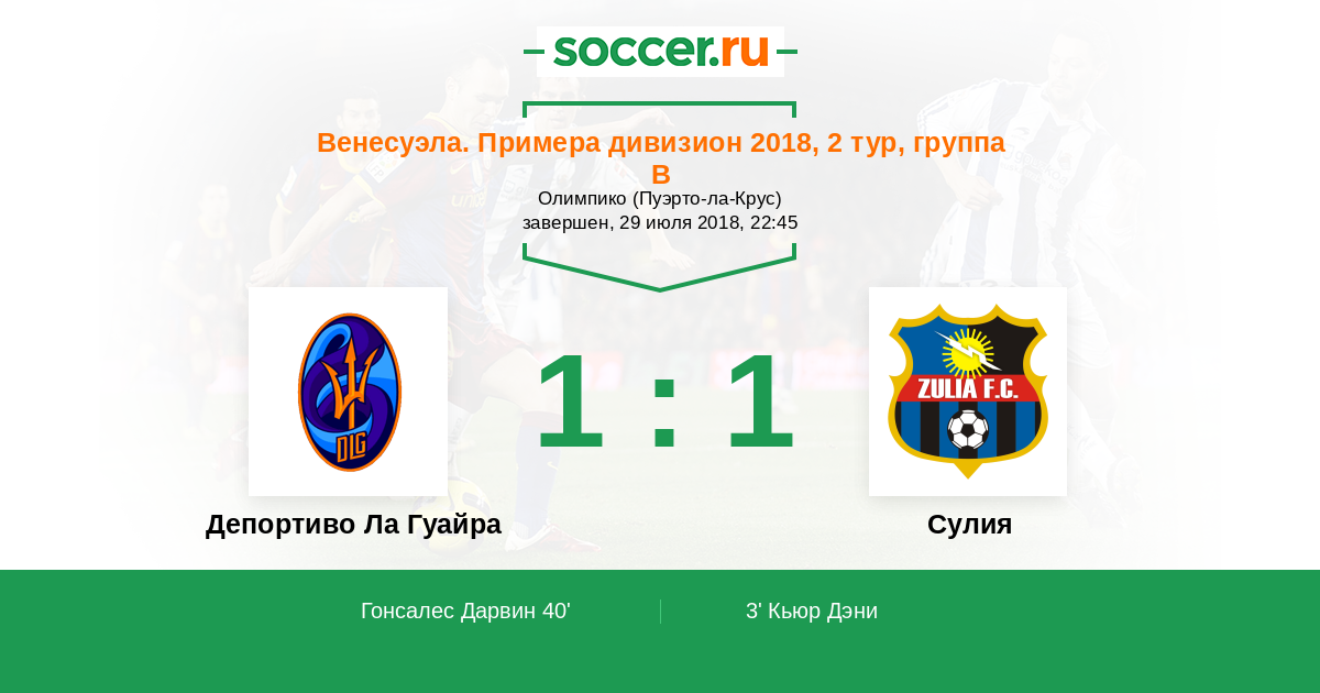 Протокол матча Депортиво Ла Гуайра против Сулия