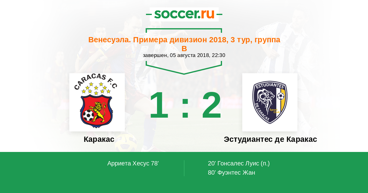 Протокол матча Каракас против Эстудиантес де Каракас