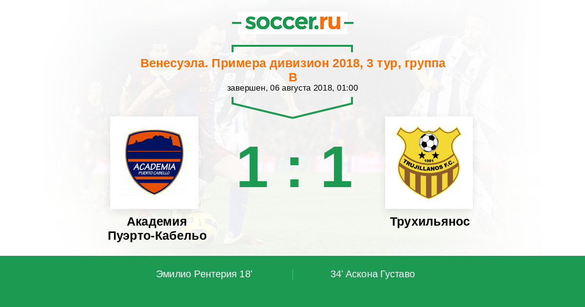Протокол матча Пуэрто-Кабельо против Трухильянос