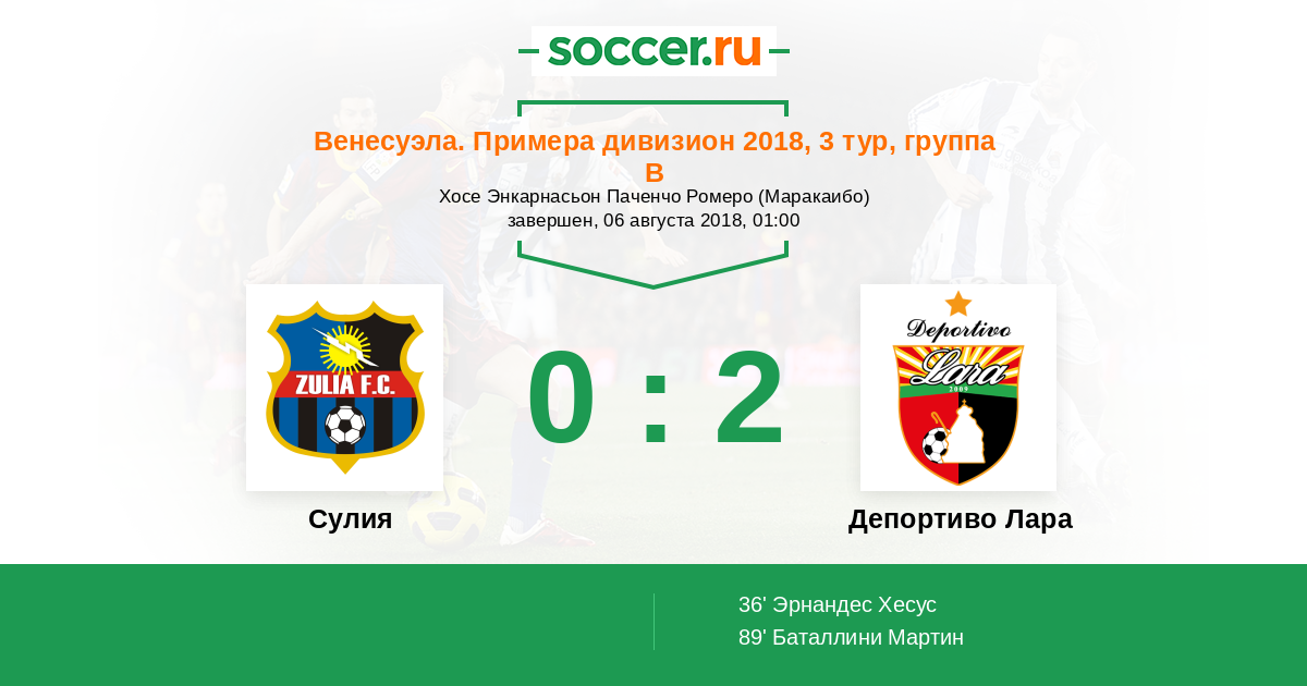 Протокол матча Сулия против Депортиво Лара