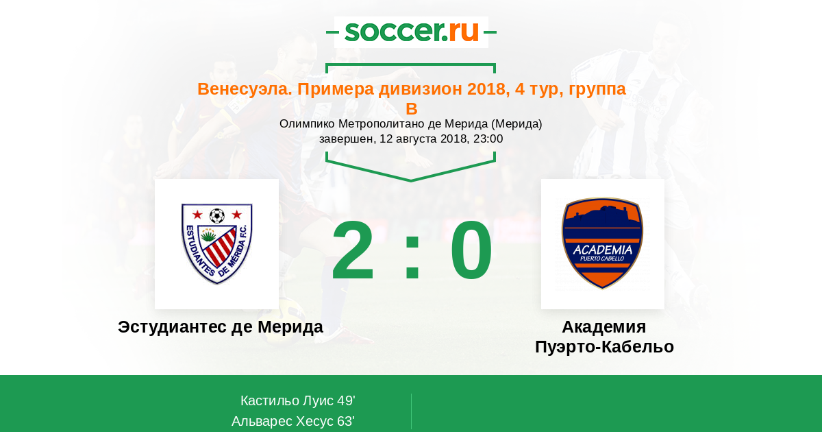 Протокол матча Эстудиантес Мерида против Пуэрто-Кабельо