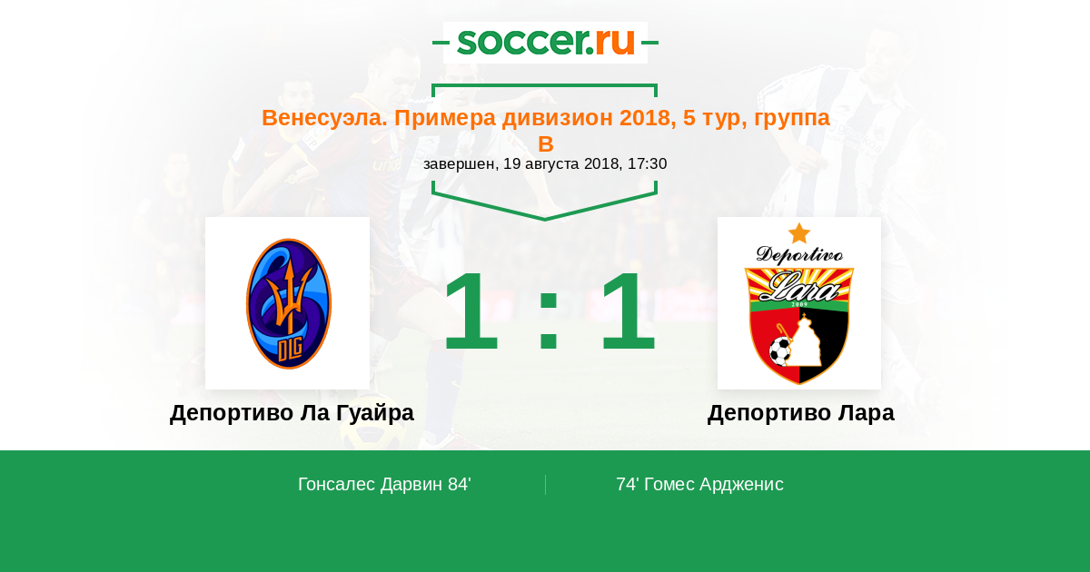 Протокол матча Депортиво Ла Гуайра против Депортиво Лара