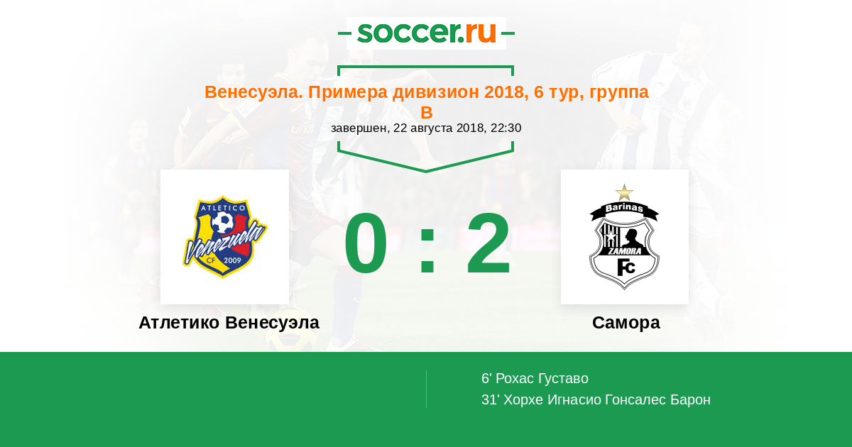 Протокол матча Атлетико Венесуэла против Замора