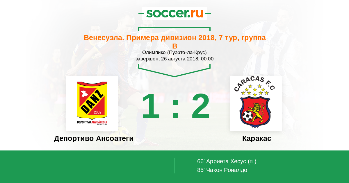 Протокол матча Депортиво Ансоатеги против Каракас
