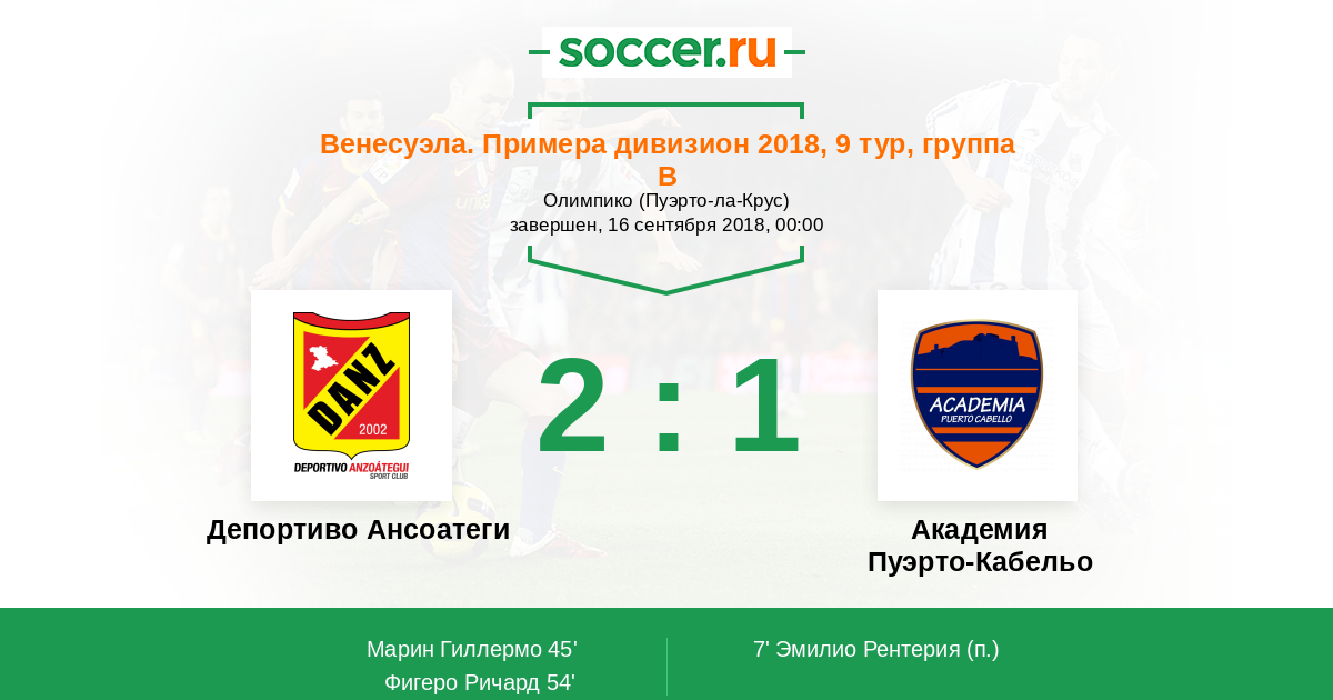Протокол матча Депортиво Ансоатеги против Пуэрто-Кабельо