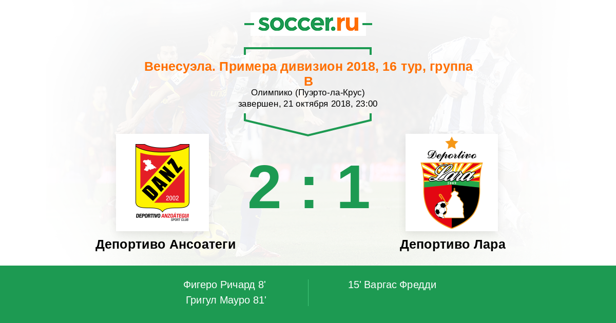 Протокол матча Депортиво Ансоатеги против Депортиво Лара