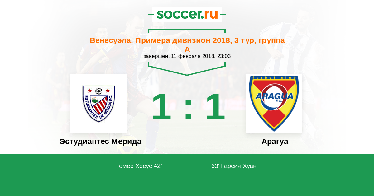 Протокол матча Эстудиантес Мерида против Арагуа