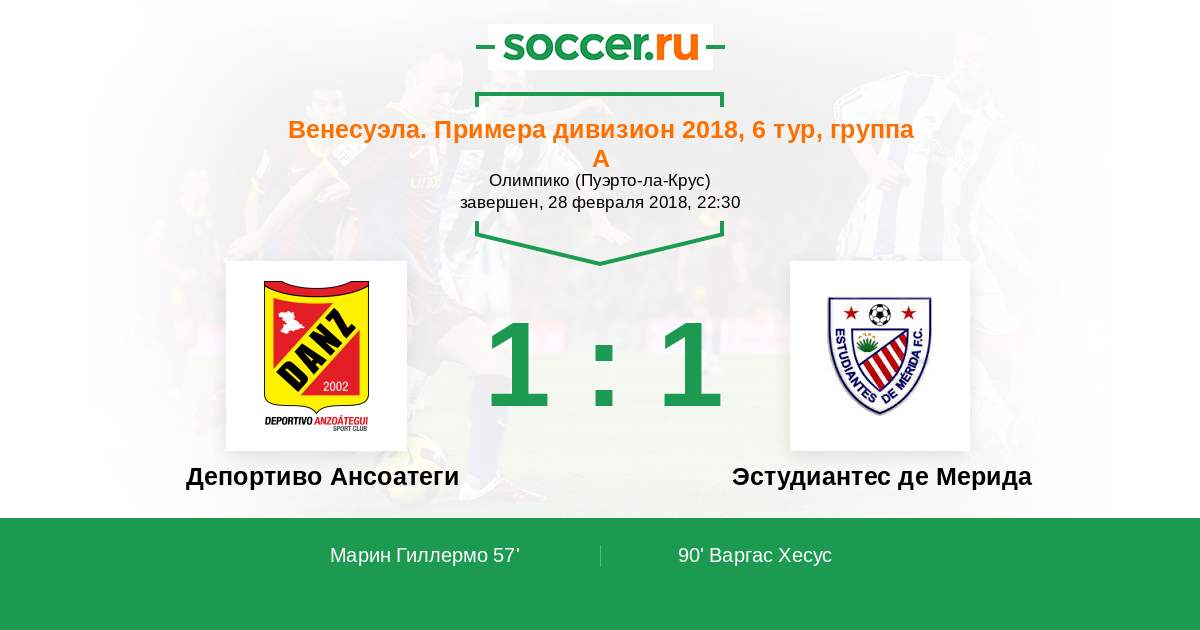 Протокол матча Депортиво Ансоатеги против Эстудиантес Мерида