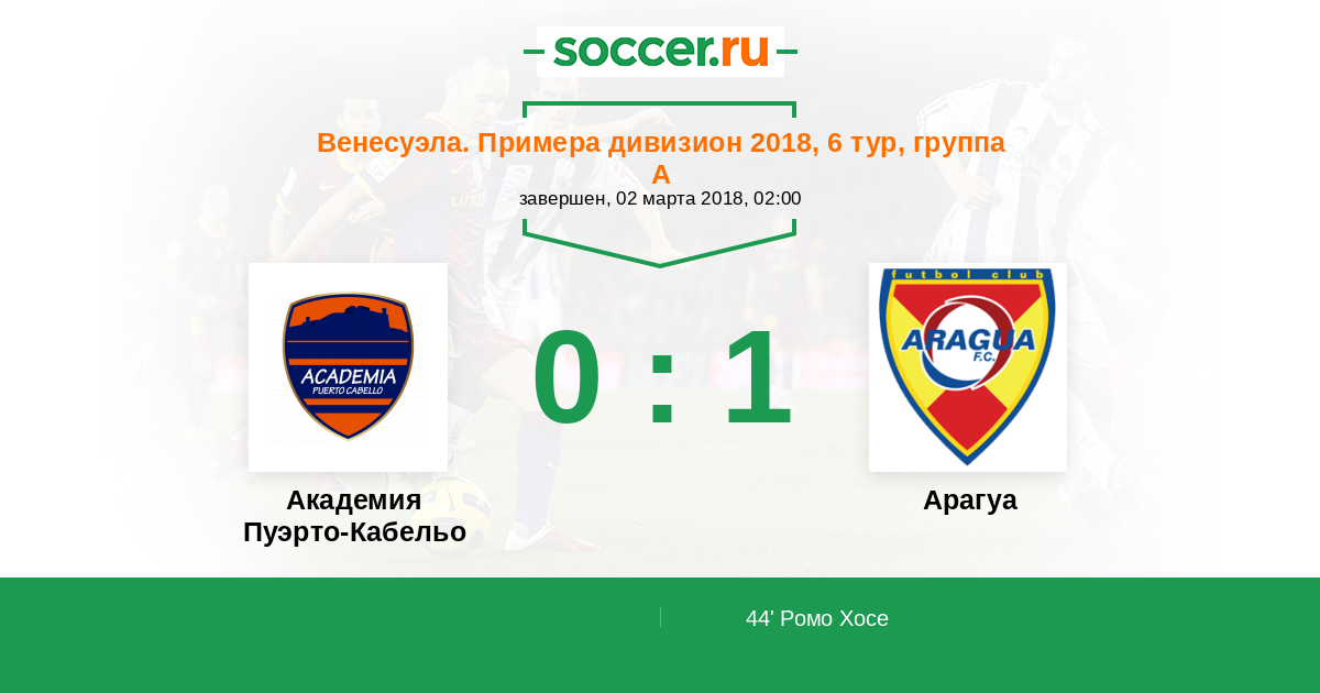 Протокол матча Пуэрто-Кабельо против Арагуа