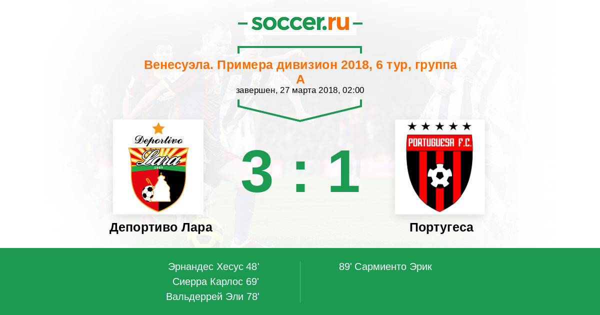 Протокол матча Депортиво Лара против Португеса